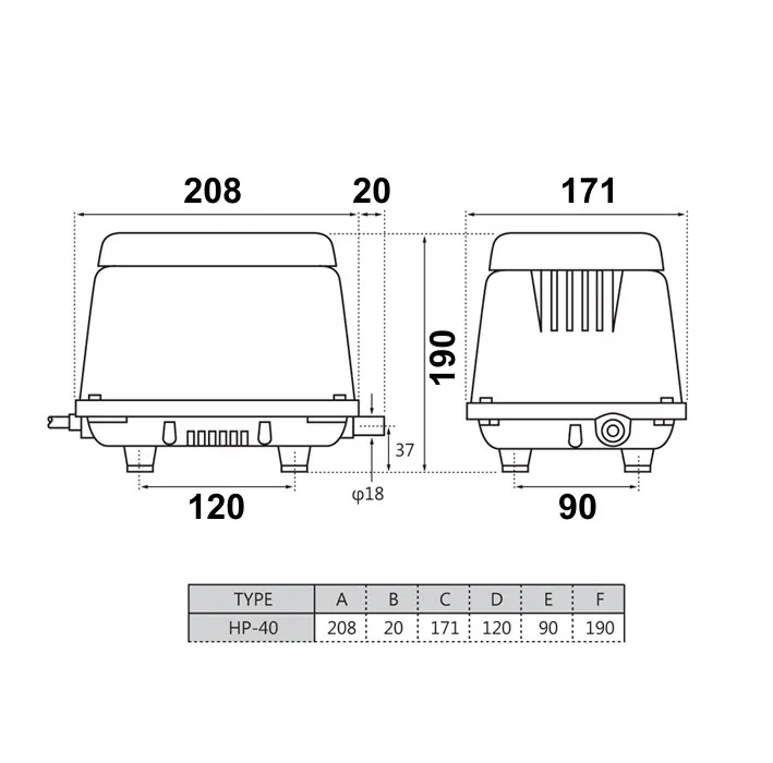 DMUCHAWA MEMBRANOWA HIBLOW HP-40 | NAPOWIETRZANIE OCZYSZCZALNI ŚCIEKÓW I AKWARIÓW