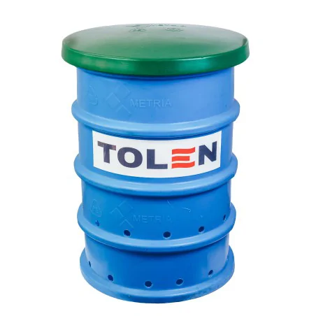 Studnia chłonna 350L to proste i skuteczne rozwiązanie do rozsączania ścieków z oczyszczalni biologicznych, gdy brak możliwości odprowadzenia do rowu lub kanalizacji. Wykonana z trwałego tworzywa, posiada otwory filtracyjne i brak dna, co umożliwia infiltrację ścieków do gruntu. Pojemność 350 L, wysokość 108 cm, średnica 70 cm.