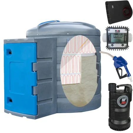 Dwupłaszczowy zbiornik 2500L na AdBlue w wersji PROFESSIONAL+ z pompą Pedrollo TOP MULTI 1-AD, licznikiem PIUSI K24, pistoletem automatycznym, izolacją termiczną i taśmą grzewczą. Posiada dużą szafę i dmuchawę grzewczą, gwarantującą bezawaryjne działanie w niskich temperaturach.