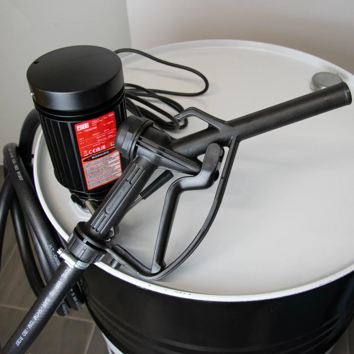 Solidnie przygotowany zestaw do przepompowywania paliwa z włoską pompą na 230V