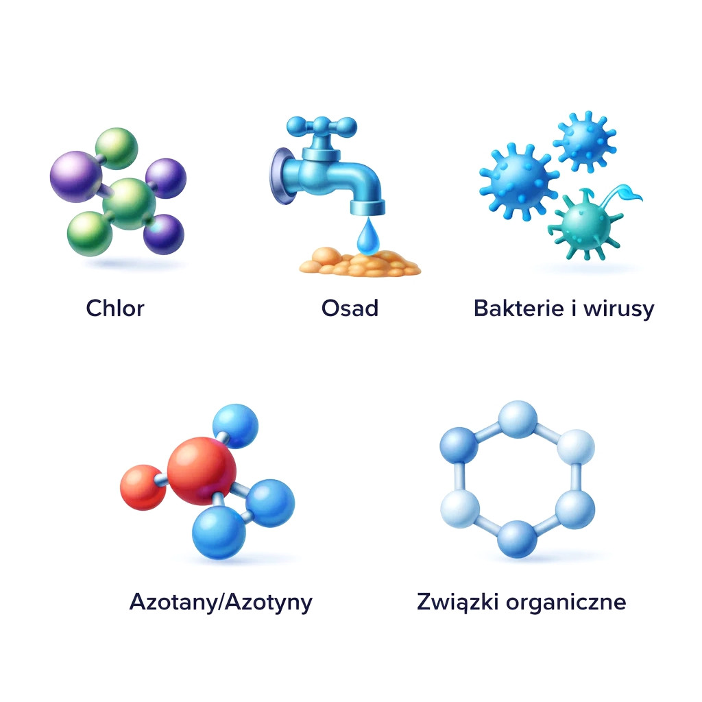 ✅ System skutecznie usuwa z wody wodociągowej chlor, metale ciężkie, bakterie, wirusy oraz nadmierną twardość. |
