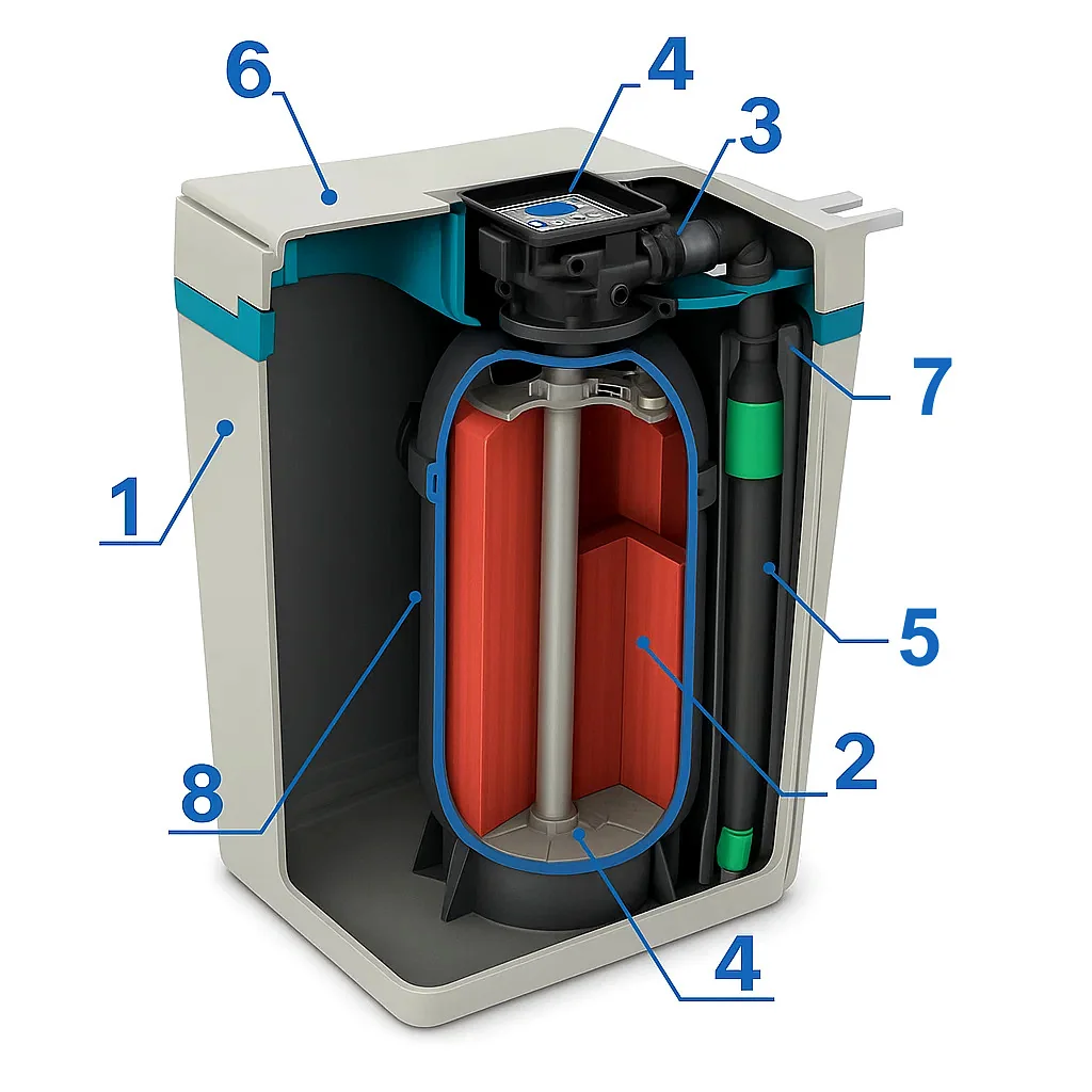 Aquaphor S800 to inteligentny zmiękczacz, który skutecznie usuwa twardość, żelazo i mangan. Chroni AGD przed kamieniem i dba o skórę. Działa automatycznie, oszczędnie zużywając sól. Kompaktowy, cichy i bezobsługowy - idealny dla domu 4-6 osób.