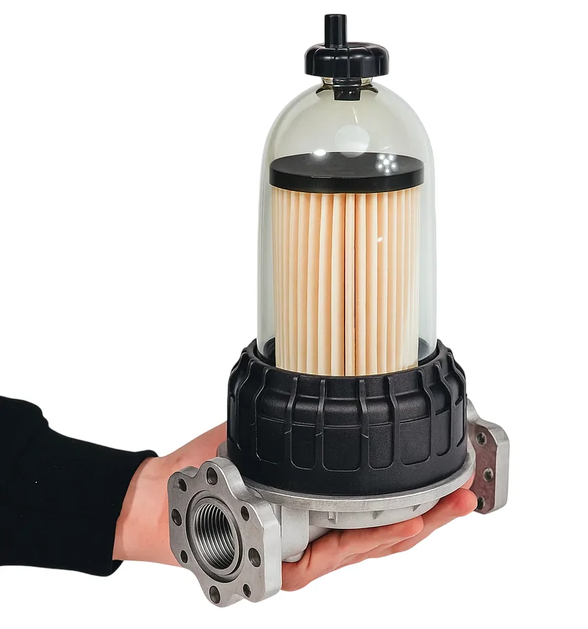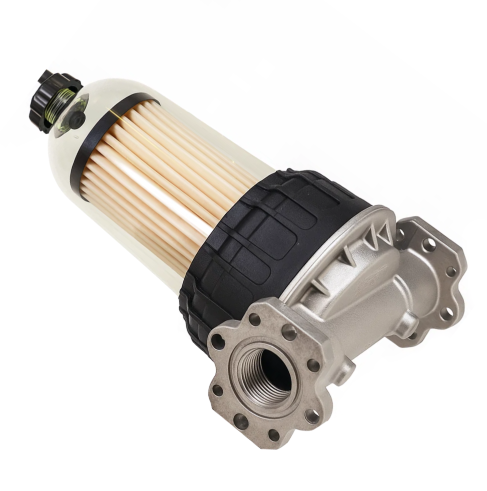 Filtr paliwa ON/Diesel z funkcją separacji wody, przezroczystą szklanką i głowicą 1" BSP. Przepustowość 70 l/min, dokładność 30 μm. Idealny do dystrybutorów Kingspan, PIUSI i systemów tankowania.
