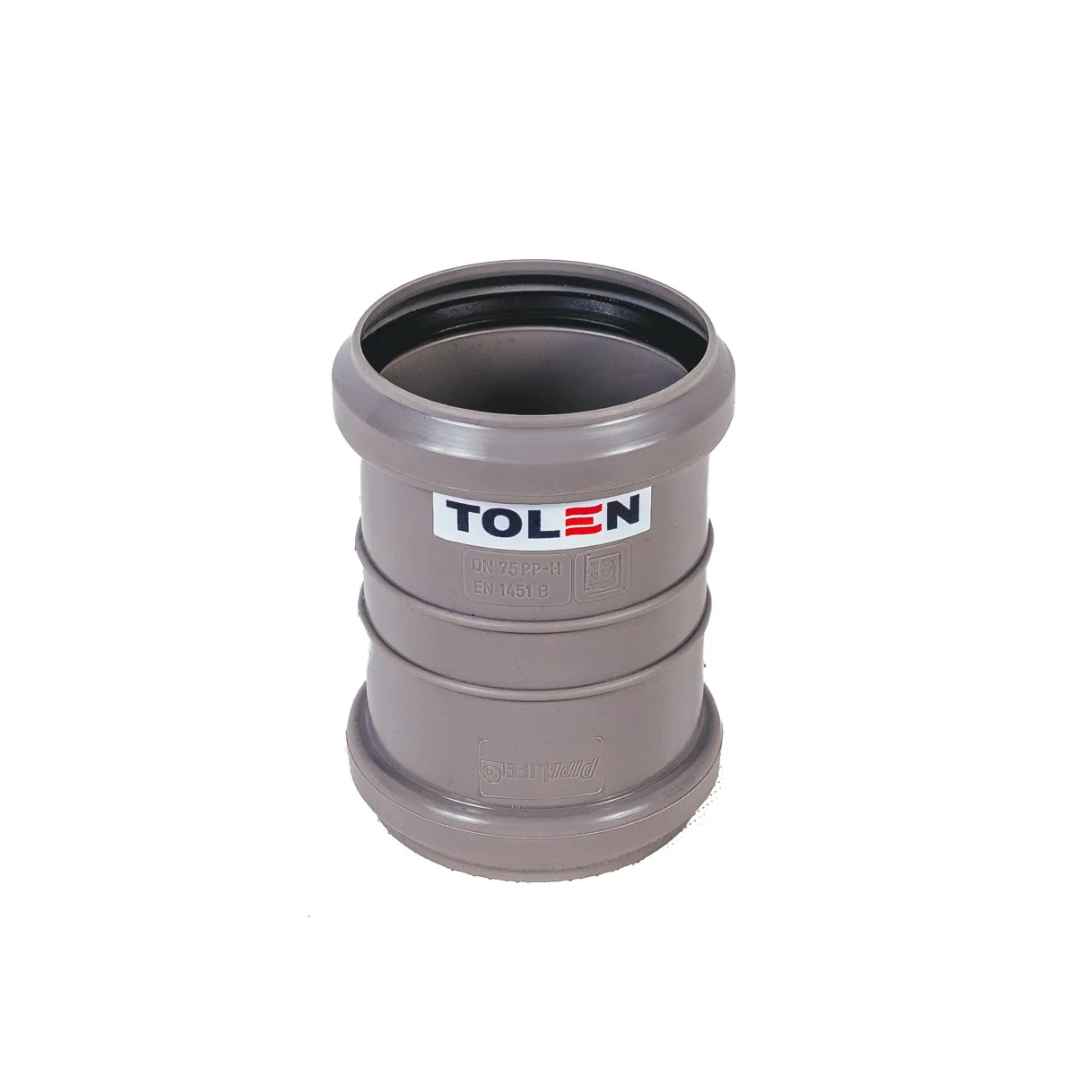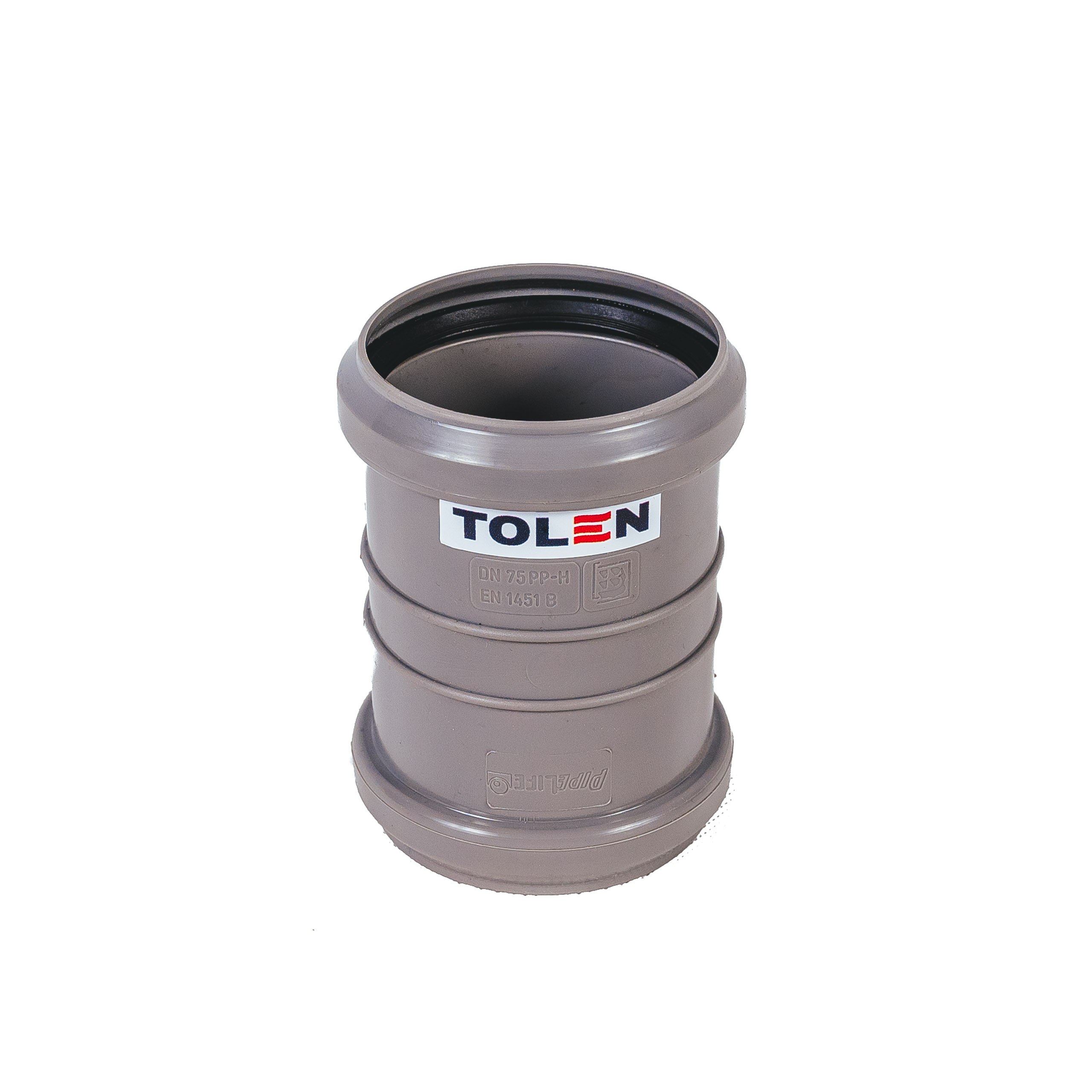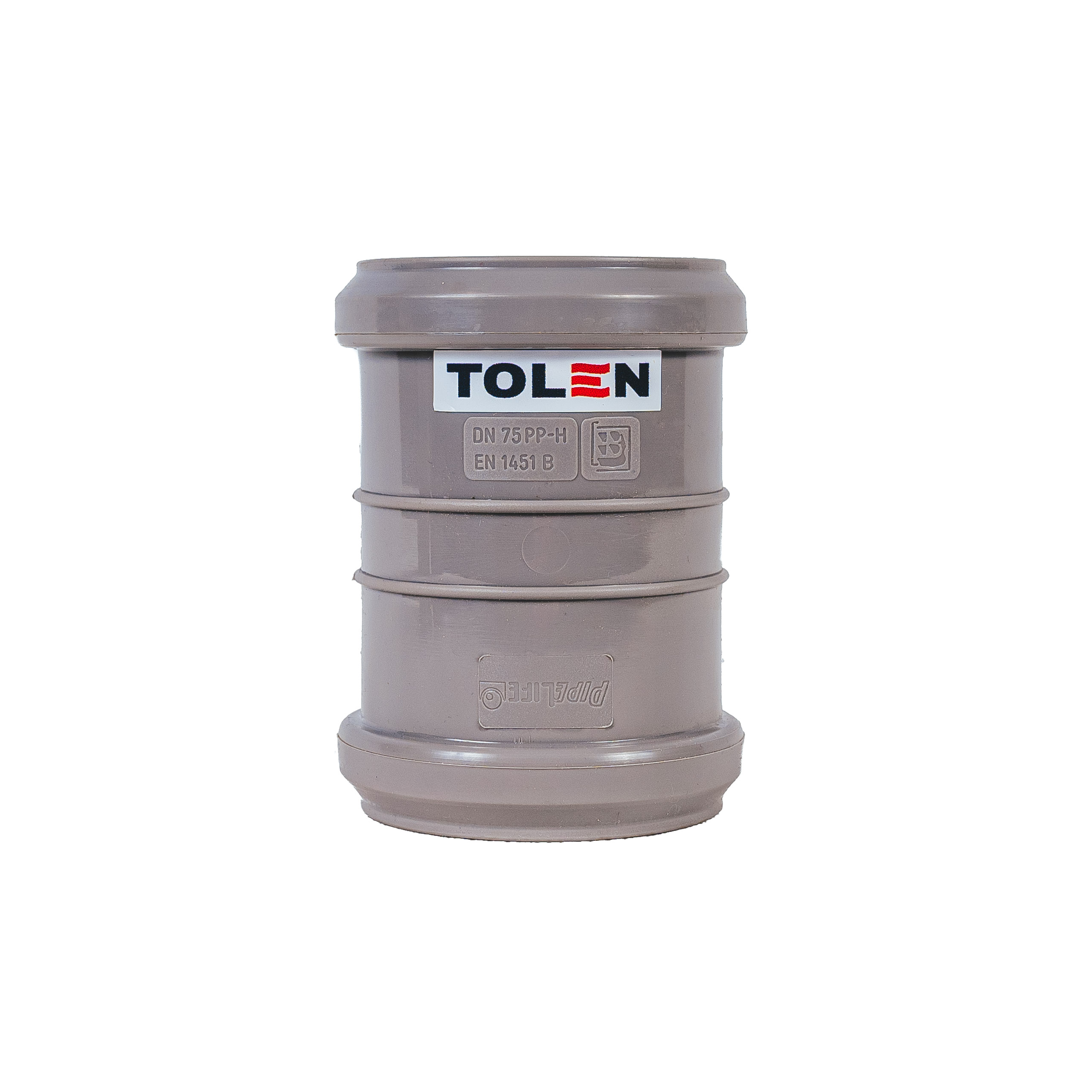 Mufa kanalizacyjna TOLEN o średnicy 75 mm przeznaczona do łączenia rur w wewnętrznych instalacjach kanalizacyjnych. Wykonana z odpornego polipropylenu, wyposażona w złącze kielichowe z uszczelką, zapewnia trwałe, szczelne i niezawodne połączenie.