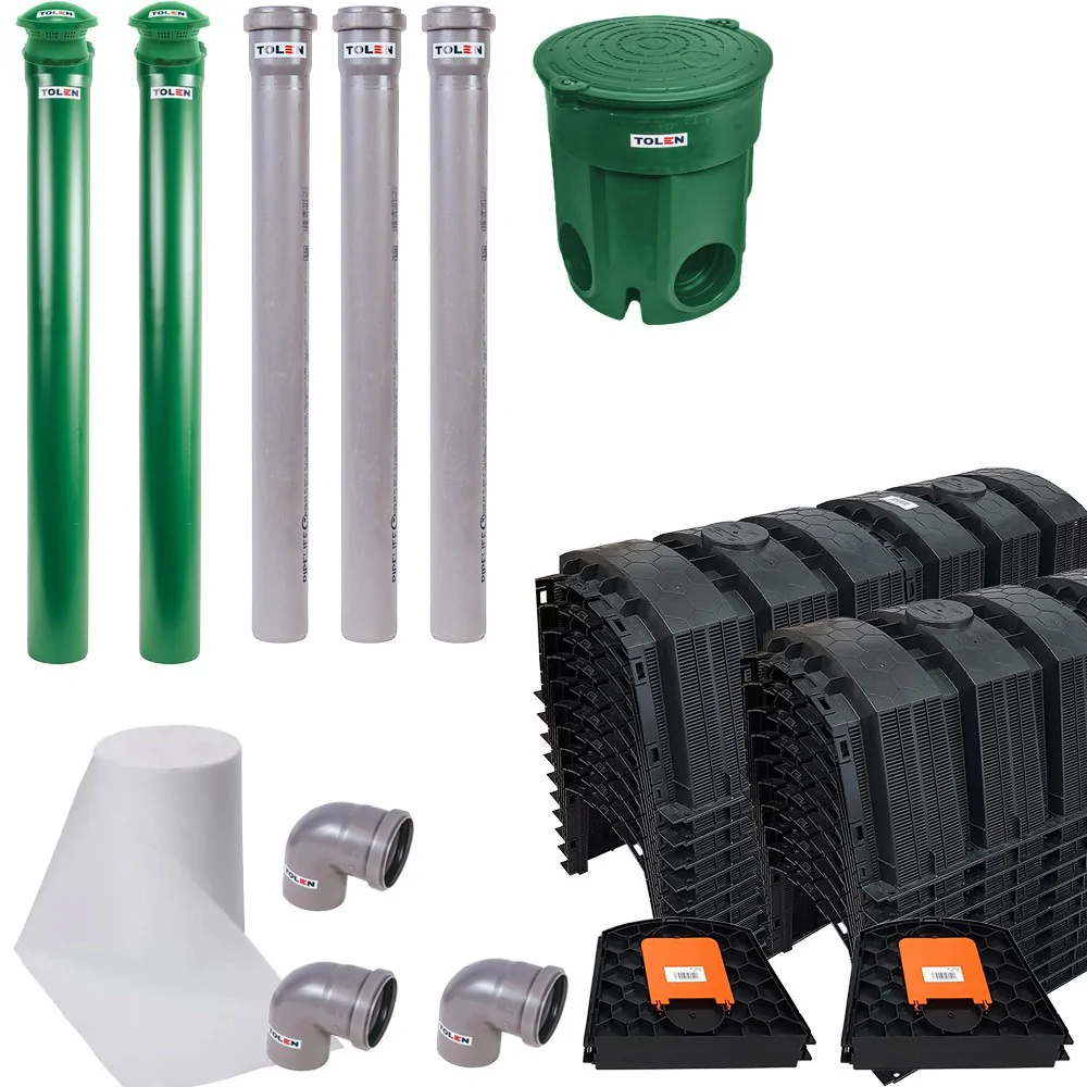Przydomowa oczyszczalnia ścieków Marseplast 2000L WATER³ to kompletny zestaw z 14 tunelami Aquabin, gotowy do montażu. Przeznaczona dla 2–4 osób, zapewnia cichą i bezawaryjną pracę. Prosta obsługa, niskie koszty eksploatacji i 10-letnia gwarancja szczelności.
