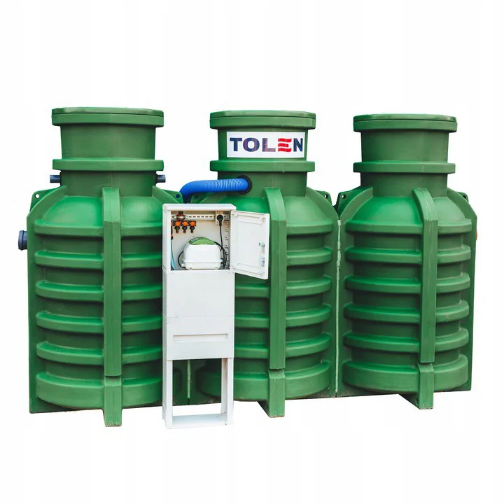 Trzykomorowa oczyszczalnia biologiczna Biotech 8 o pojemności 3300L przeznaczona dla 4-8 osób. Zapewnia skuteczność oczyszczania 98,4% i niskie zużycie energii. Wykonana z trwałego polietylenu, wyposażona w dmuchawę SECOH JDK-50 i kompletny zestaw montażowy.