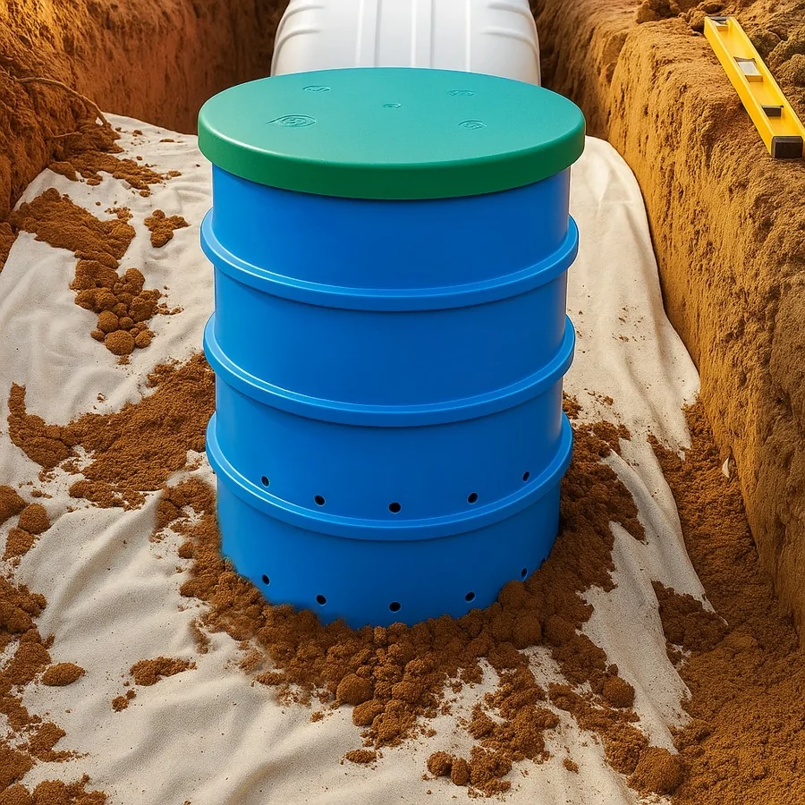 Studnia chłonna jest elementem końcowym do bezpiecznego odprowadzania oczyszczonej wody do gruntu. Działanie opiera się na naturalnej infiltracji przez perforacje i złoże żwirowe. Należy jednak zapewnić, aby jej montaż odbył się z zachowaniem odpowiedniej odległości od poziomu wód gruntowych.