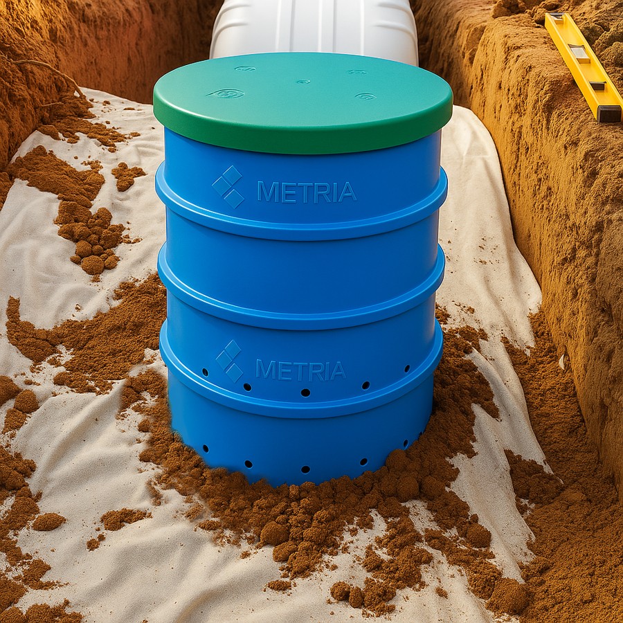 Studnia chłonna jest elementem końcowym do bezpiecznego odprowadzania oczyszczonej wody do gruntu. Działanie opiera się na naturalnej infiltracji przez perforacje i złoże żwirowe. Należy jednak zapewnić, aby jej montaż odbył się z zachowaniem odpowiedniej odległości od poziomu wód gruntowych.