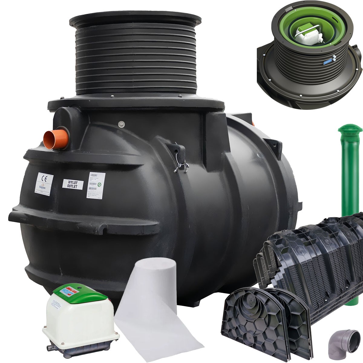 Oczyszczalnia biologiczna Kingspan BioAir 1 o wydajności 0,6 m³/d to kompletne rozwiązanie dla 4 osób. Posiada zintegrowaną dmuchawę SECOH JDK-S-60, właz A15, tunelowy system drenażowy i możliwość montażu do 150 cm. Cicha, niezawodna i zgodna z EN 12566-3.
