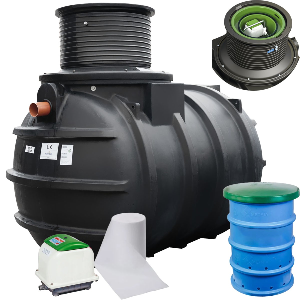 Kingspan BioAir 2 to efektywna oczyszczalnia biologiczna dla 4 osób, wyposażona w cichą maszynownię, dmuchawę SECOH i studnię chłonną. Zestaw zapewnia szybki montaż, wysoką skuteczność oczyszczania oraz niezawodną eksploatację na działkach bez możliwości odprowadzenia ścieku do odbiornika.