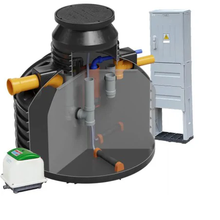 Wysoka wydajność: Przeznaczona dla 2–4 osób, oczyszcza ścieki skutecznie dzięki technologii hybrydowej, łączącej osad czynny i złoże biologiczne.