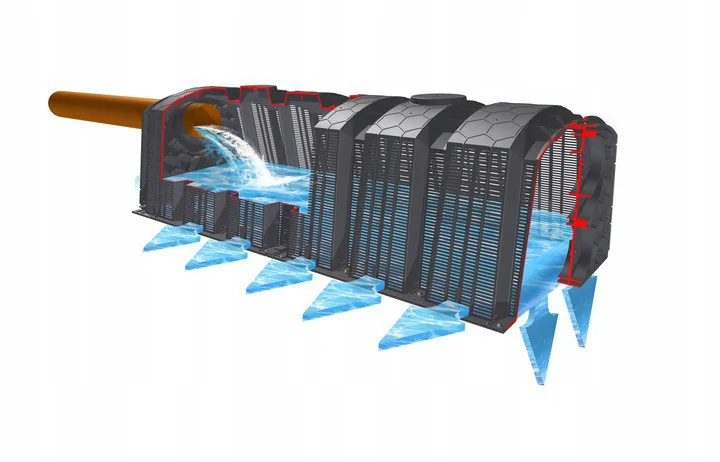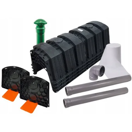 ![]() | ✔️ Charakteryzuje się bardzo dużą wytrzymałością na ściskanie dzięki specjalnej konstrukcji i gęstemu ożebrowaniu ( nie pęka, nie odkształca się, nie wybrzusza, nie łamie) - badania producenta potwierdzają 100% szczelność zbiornika ✔️ Można go montować na terenach z wysokim poziomem wód gruntowych ✔️ Na zbiornik można nasypać 0,5 m gruntu ✔️ Oczyszczalnia wyposażona jest w drenaż rozsączkowy z tuneli grafa - 130 L każdy - Jest to rozwiązanie dedykowane dla małej działki na której nie ma miejsca na tradycyjny drenaż, ✔️ Końcowe elementy drenażu wraz z wywiewkami są w kolorze zielonym (odporne na UV) ,dzięki czemu idealnie komponują się z ogrodem |