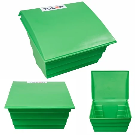 Zielony pojemnik na sól i piasek gwarantuje ochronę zawartości przed wilgocią i promieniowaniem UV, dzięki czemu materiał zawsze pozostaje suchy i gotowy do użycia. To praktyczne rozwiązanie dla osób i przedsiębiorstw, które chcą zadbać o bezpieczeństwo i komfort poruszania się w trudnych warunkach zimowych.