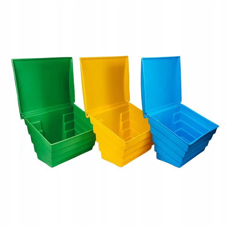 ![]() | 📏 Wybierz odpowiednią pojemnośćSkrzynie na piasek i sól dostępne są w trzech wariantach, dostosowanych do różnych potrzeb i łatwych w transporcie wózkiem widłowym: