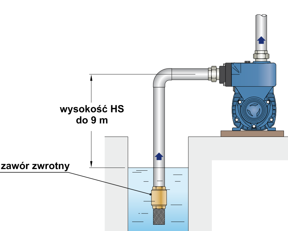 Pompa wyposażona jest w klapowy zawór zwrotny. Zaleca się montaż w dobrze wentylowanych pomieszczeniach lub osłonięcie jej przed warunkami atmosferycznymi. |