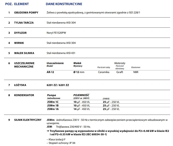 ![]() | 💧 Pompa samozasysająca Pedrollo JSWm 1A 230V 0.55kW Włoskie pompy serii JSW to wydajne, samozasysające jednostki przeznaczone do pompowania czystej wody oraz innych cieczy nieagresywnych chemicznie. Model JSWm 1A doskonale sprawdza się w gospodarstwach domowych do zaopatrzenia w wodę, systemach nawadniających oraz zestawach hydroforowych. Dzięki zdolności samozasysania działa nawet w przypadku obecności powietrza w instalacji. |