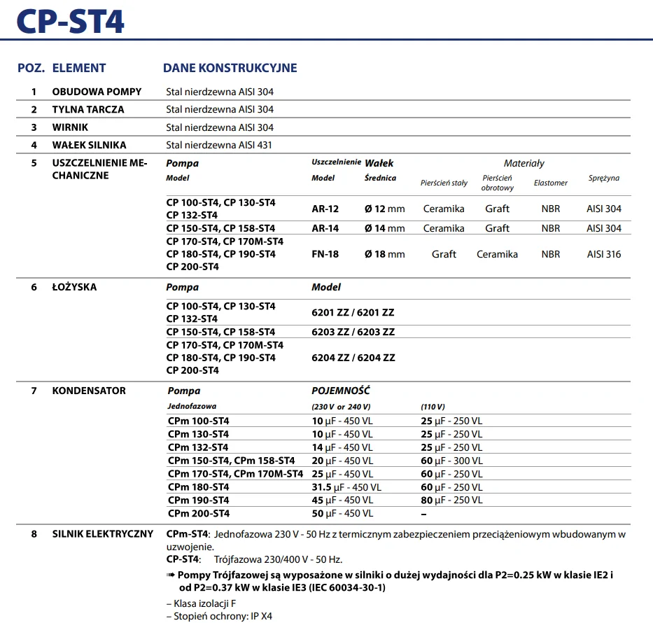 ![]() | 🔩 Obudowa pompy ze stali nierdzewnej AISI 304 – wysoka odporność na korozję i długowieczność nawet w trudnych warunkach pracy. 🌀 Wirnik zamknięty ze stali nierdzewnej AISI 304 – zapewnia wysoką sprawność hydrauliczną i trwałość przy przepompowywaniu czystej wody. 🔧 Wał silnika ze stali nierdzewnej AISI 304 – wytrzymały i odporny na ścieranie, bezpośrednio połączony z wirnikiem. |