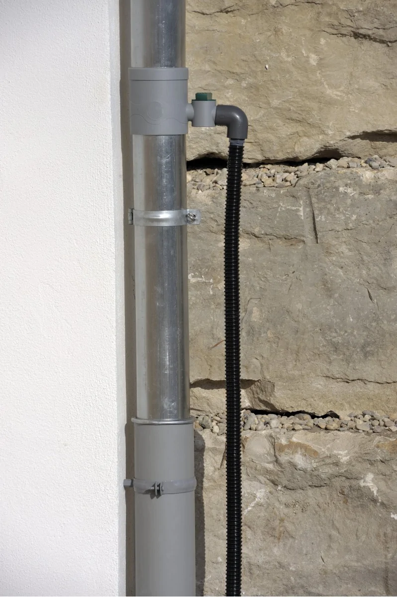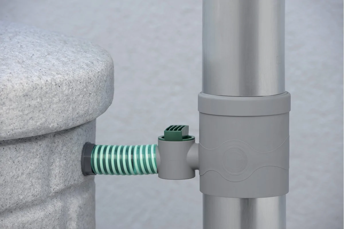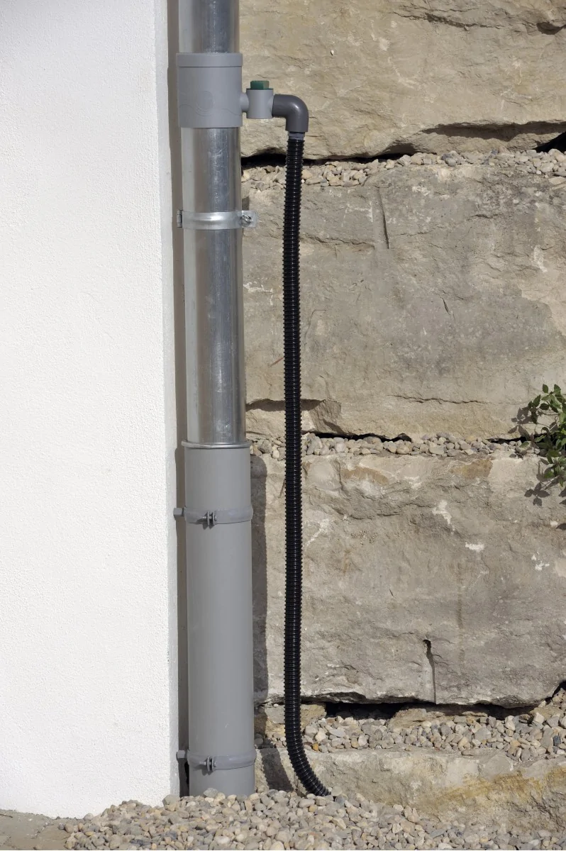 Zbieracz wody deszczowej to przyrząd, który umożliwia zbieranie wody opadowej z rynien i rur spustowych, kierując ją bezpośrednio do zbiorników czy beczek na deszczówkę. | |