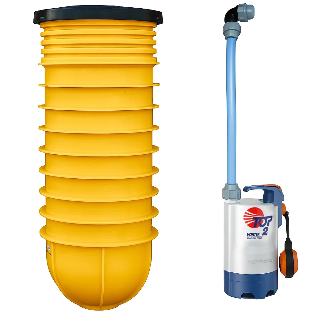 Kompletna przepompownia ścieków ZP600 z włoską pompą Pedrollo Top 2 Vortex. Solidny zbiornik o pojemności 460 l z użebrowanym korpusem, gotowy do montażu w trudnych warunkach gruntowo-wodnych. Idealna do ścieków oczyszczonych.
