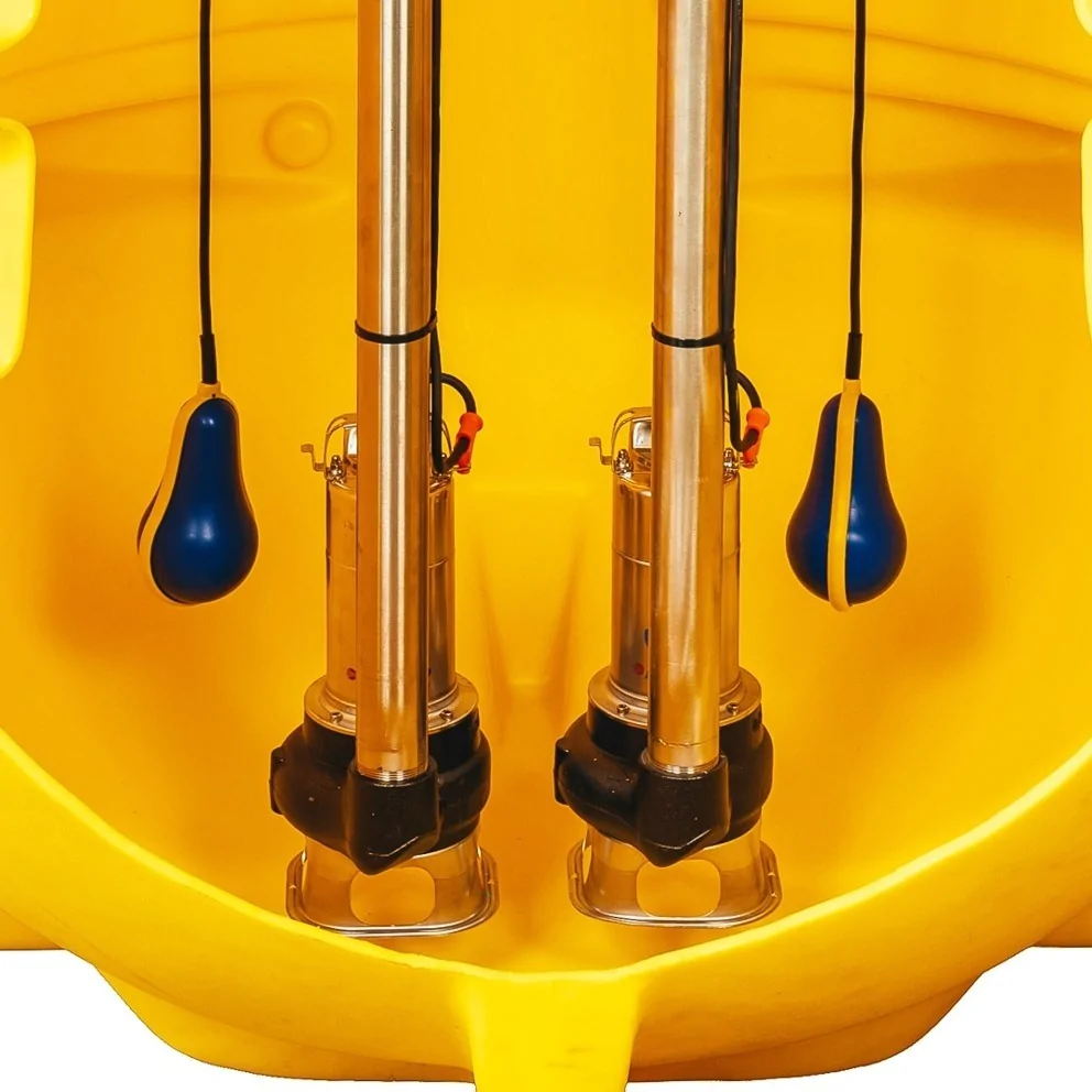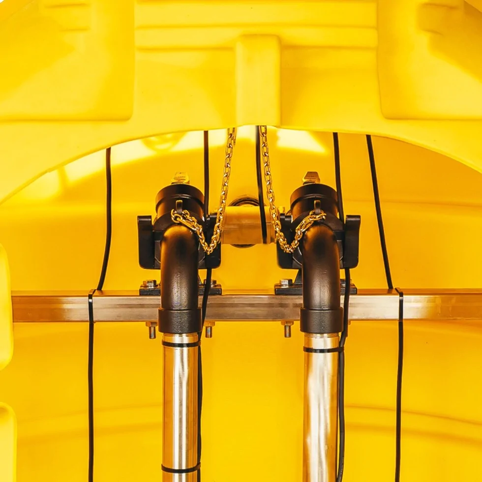 Przepompownia ścieków z alarmem Pedrollo, wyposażona w dwie pompy Pedrollo VXm 8/50. Naprzemienna praca pomp gwarantuje niezawodność, a szybki montaż ułatwia zestaw sprzęgający z zaworem zwrotnym. Gotowa do pracy od razu po instalacji!