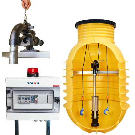 Przepompownia ciśnieniowa PC2 TOLEN z pompą ORKA-N to kompletne rozwiązanie do odprowadzania ścieków w systemach ciśnieniowych. Zawiera zbiornik PEHD, szafkę sterującą z alarmem, zawór zwrotny i osprzęt montażowy. Trwała, szczelna i gotowa do instalacji.