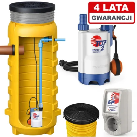 Przepompownia ścieków, włoska Pompa Pedrollo Top 2 Vortex ZPN 600 + Sterownik EP