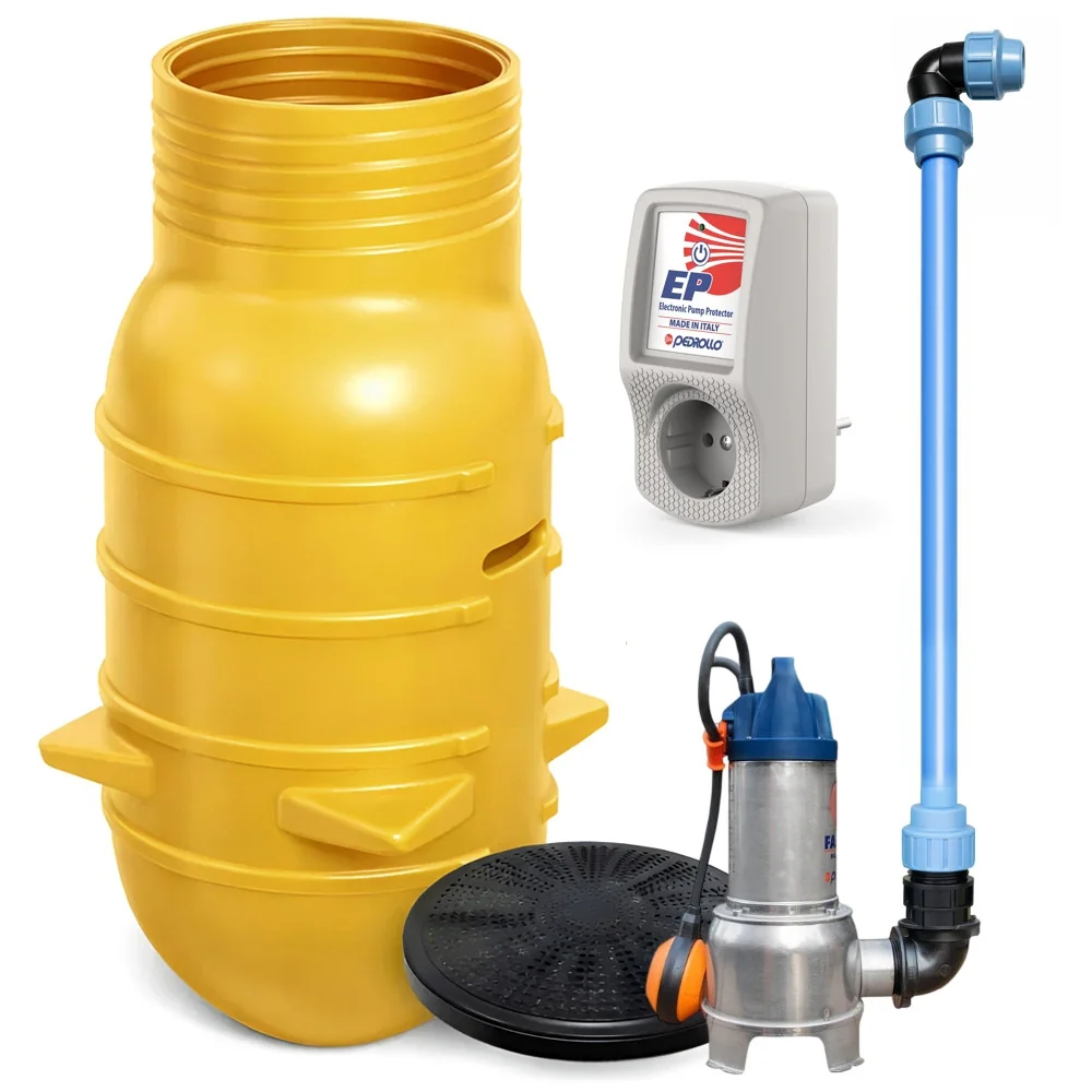 Kompletna przepompownia ścieków Marseplast ZPN 600 z włoską pompą Pedrollo Family i sterownikiem EP. Trwały zbiornik 460 litrów, idealny do ścieków oczyszczonych. Zestaw zawiera wszystkie niezbędne akcesoria.