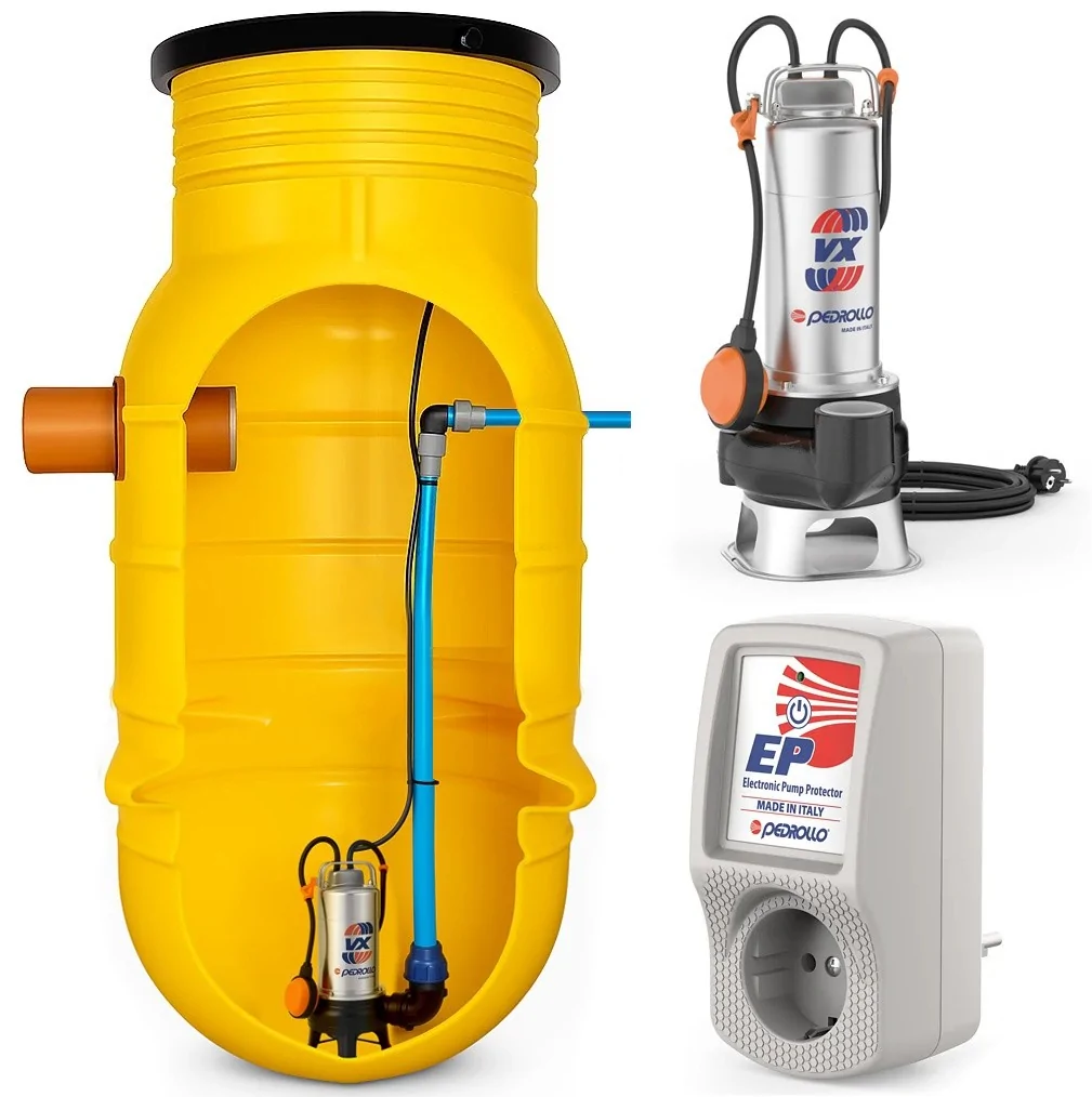 Przepompownia ścieków ZP 800, włoska pompa Pedrollo VXm 8/35 + Sterownik EP