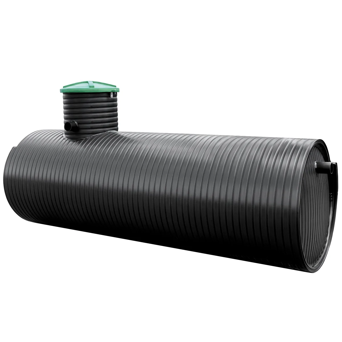 Standardowe wyposażenie zbiornika: nadstawka Ø=600mm i H=500mm, odpowietrzenie PCV, Ø=110mm, wlot PE 160mm.