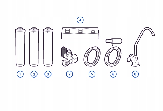 Dokładna filtracja Wkłady kolejno oczyszczają wodę z widocznych zanieczyszczeń mechanicznych i rozpuszczonych szkodliwych substancji.