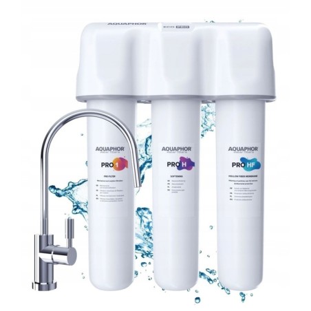 Aquaphor ECO PRO to zaawansowany filtr pod zlew łączący wkłady Pro 1, Pro 2 i Pro HF. Skutecznie usuwa chlor, metale ciężkie, żelazo i bakterie, oferując ultrafiltrację bez chemii. Zapewnia czystą, bezpieczną wodę o naturalnym składzie mineralnym i wydajności do 10 000 litrów.