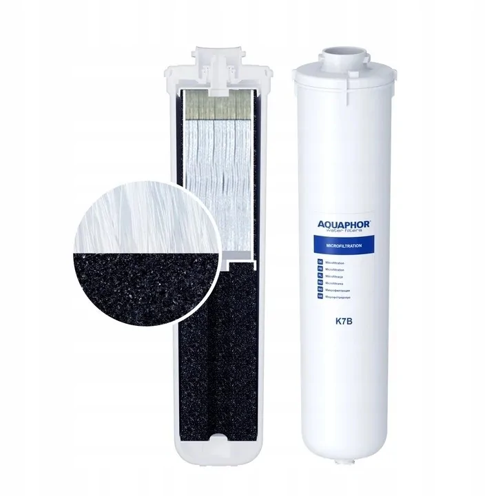 ![]() | ✅ K7B - wkład węglowy z membraną kapilarnąAquaphor K7B to hybrydowy wkład filtrujący przeznaczony do podzlewowych systemów uzdatniania wody. Łączy w sobie blok węglowy z włóknem Aqualen i aktywowanym węglem kokosowym z membraną kapilarną, tworząc skuteczny system oczyszczania wody w dwóch etapach.