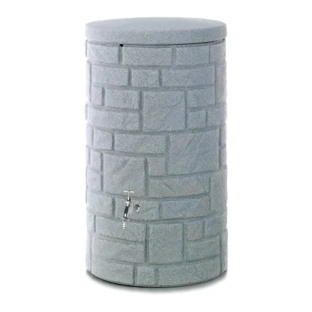 Kolumnowy zbiornik na deszczówkę Arcado, który doskonale imituje naturalny kamień lub małą, murowaną studnię. Stworzony z dbałością o szczegóły, nie tylko spełnia swoje praktyczne zastosowanie, ale również dodaje uroku przestrzeni na zewnątrz.