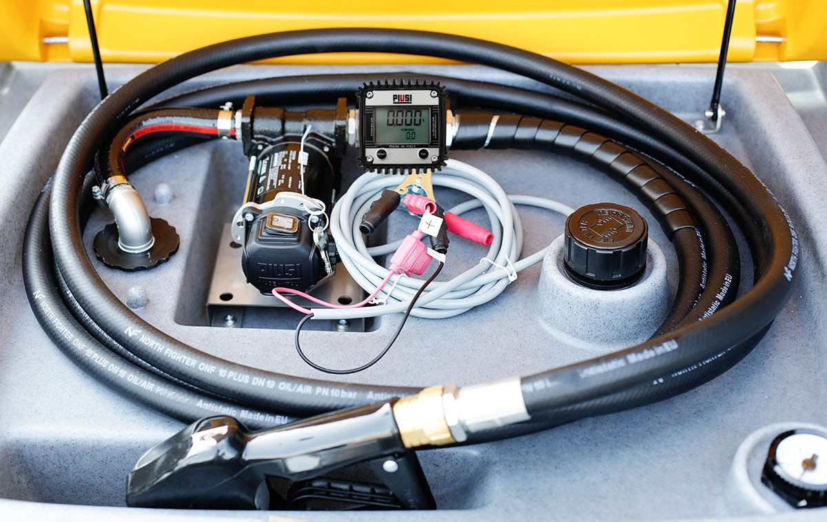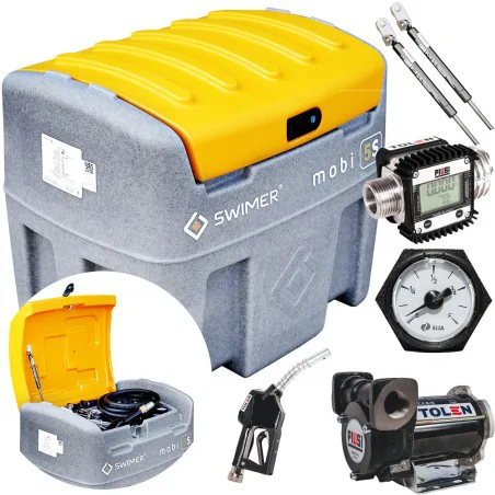 Swimer 200L Basic to mobilny zbiornik do oleju napędowego z pompą PIUSI BP3000 12V, licznikiem K24 i pistoletem automatycznym. Kompaktowe wymiary, solidna obudowa i atesty ADR zapewniają bezpieczny transport oraz wygodną dystrybucję paliwa.
