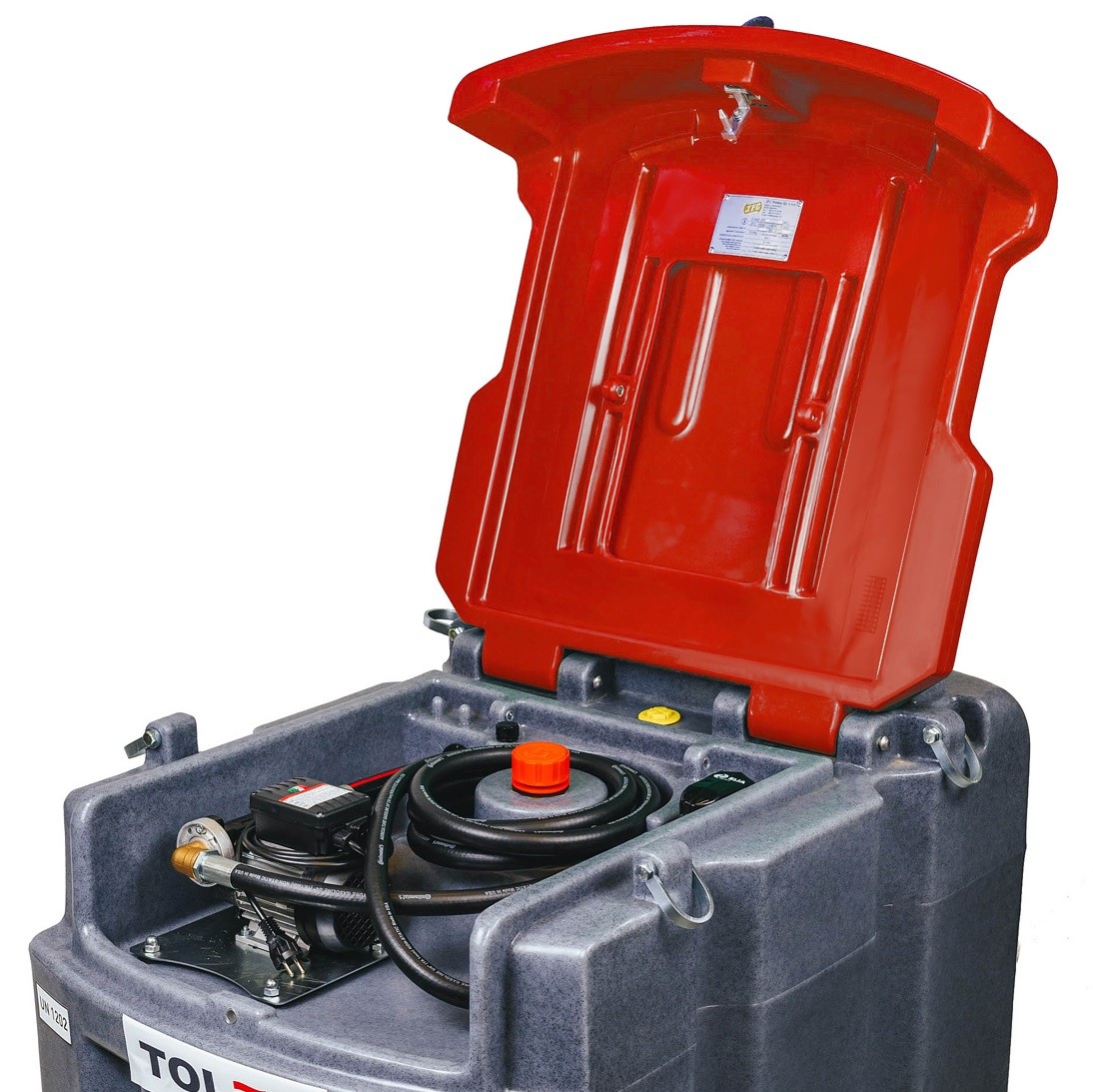 | Zbiornik mobilny JFC 950 L w wersji SPECIAL to rozbudowana wersja, przeznaczona dla klientów poszukujących dodatkowych funkcji i rozszerzonego wyposażenia w porównaniu do podstawowej wersji. ✅ Układ dystrybucyjny Special został doposażony między innymi w licznik pomiarowy zatankowanego paliwa. Cały składa się z poniższych elementów.1. Pompę Adam Pumps PA1 70A o wydajności do 70 L/min z kablem 2m. Złącze na wąż 1" 2. Licznik do ON K24 3. Pistolet Automatyczny A039 4. Węże renomowanej firmy Continental -4m. 5. Szekle transportowe