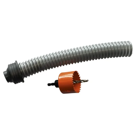 Kompletny zestaw do połączenia zbieracza wody deszczowej ze zbiornikiem bez zdejmowanej pokrywy. Wąż 32 mm o długości 30 cm oraz wyrzynarka umożliwiają precyzyjny montaż i trwałe, szczelne połączenie systemu.