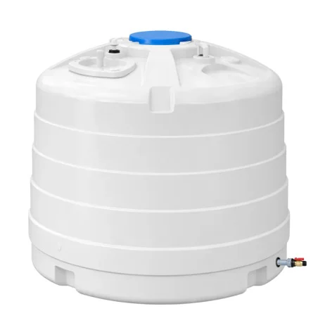 Zbiornik AQ5000 o pojemności 5000 litrów to atestowane rozwiązanie do bezpiecznego magazynowania wody pitnej. Wykonanie z polietylenu odpornego na promieniowanie UV pozwala na jego montaż zarówno wewnątrz, jak i na zewnątrz budynków. Produkt posiada certyfikat PZH oraz fabryczny kran spustowy, co gwarantuje higienę i wygodną dystrybucję wody nawet przy dużej pojemności.