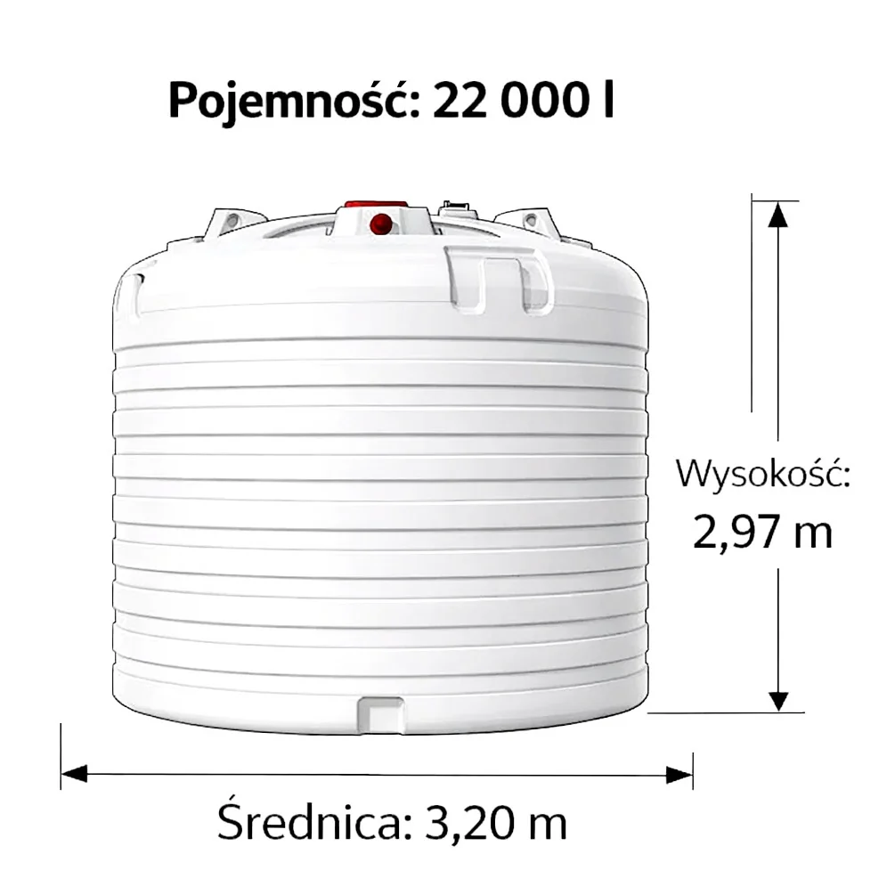 Zbiornik Aquatower 22 000 l to profesjonalny, pionowy magazyn wody deszczowej wykonany z trwałego PE-HD. Dzięki zwartej konstrukcji oszczędza miejsce, stanowiąc idealne rozwiązanie dla rolnictwa, przemysłu i dużych posesji.