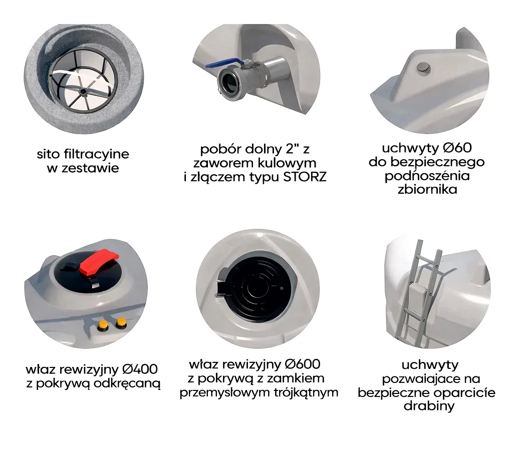 ![]() | 🌟 Trwała i bezpieczna konstrukcja1. Polietylen PE-HD stabilizowany UV 2. Szczelna budowa monolityczna 3. Wzmocniona ścianka |