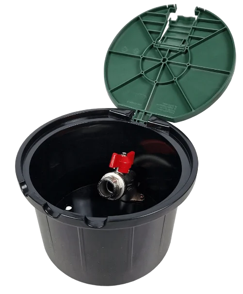 Studzienka poboru wody jest to pojemnik z tworzywa sztucznego z pokrywą zamontowaną na zawias. Wewnątrz studzienki został umieszczony metalowy zawór kulowy. Zawór posiada przyłącze gwintowane 3/4 cala na wlocie jak i wylocie. Studzienkę należy zamontować na równi z gruntem, tak aby było możliwe otwarcie pokrywy. Zaleca się podłączenie studzienki w wodę, wykonać za pomocą kolana PE GZ 3/4 cala. Studzienka poboru wody z zaworem 3/4 cala PEŁNA posiada pokrywę z dodatkową klapką. Pełna pokrywa studzienki zabezpiecza jej wnętrze przed ślimakami, stanowi dodatkową ochronę zaworu przed niską temperaturą oraz pełni funkcję dodatkowej ozdoby każdego ogrodu. Wąż ogrodowy należy podłączyć do studzienki poprzez zastosowanie przyłącza pod szybkozłącze ogrodowe z gwintem GW 3/4 cala. |